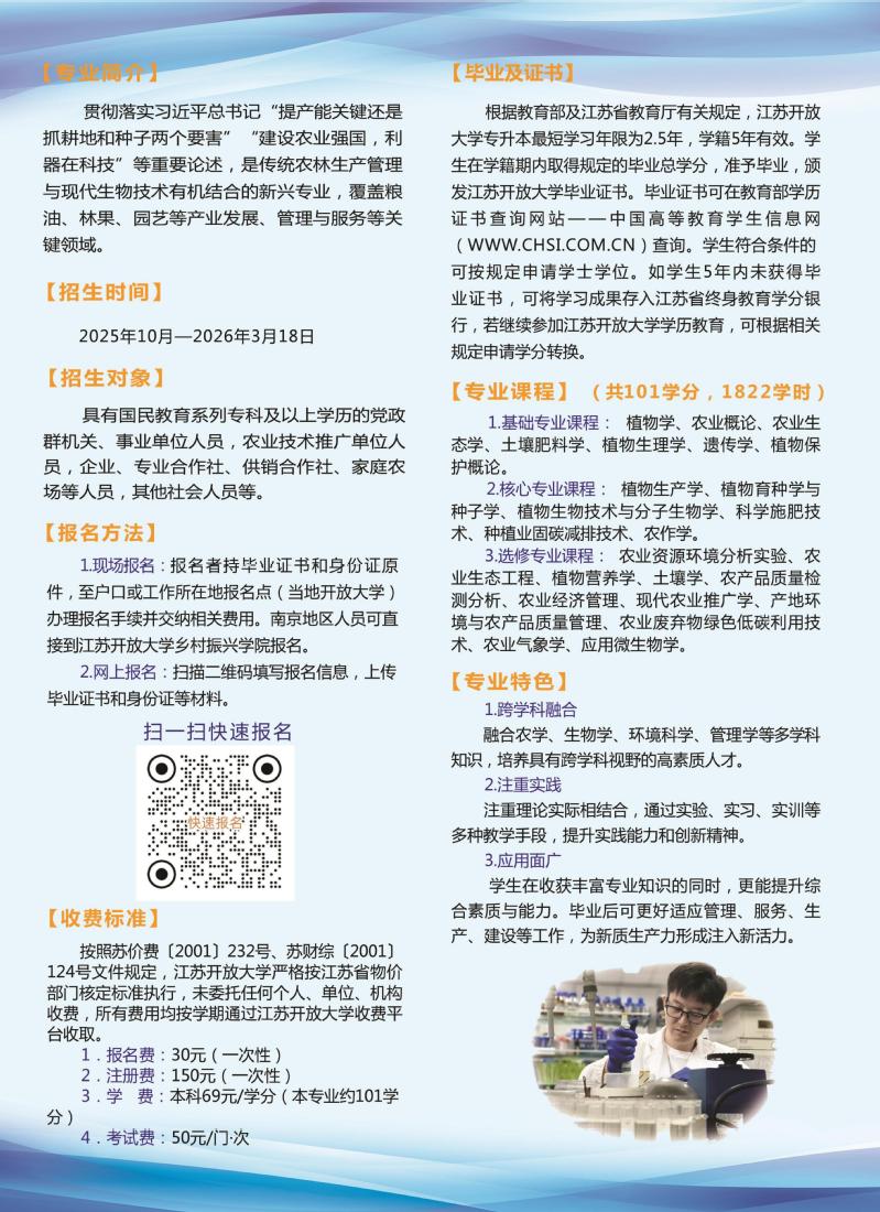 专业核心课程:植物生产学、植物育种学与种子学、植物生物技术与分子生物学、科学施肥技术、种植业固碳减排技术、农作学。