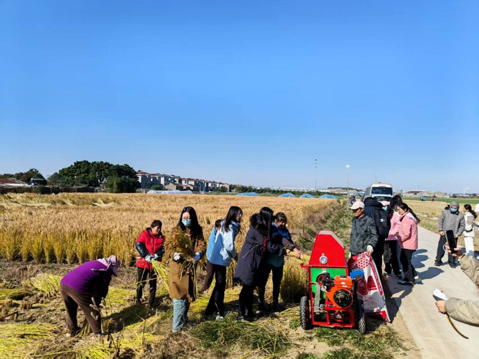思想的火花在车间碰撞,实干的精神在田间升华。技术交流结束后,教职工们随即转战稻田,分组下田,挥镰割稻,并体验手工脱粒。