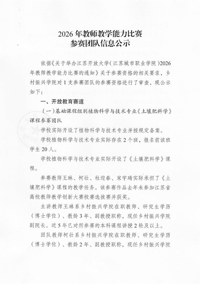 2026年教师教学能力比赛参赛团队信息公示